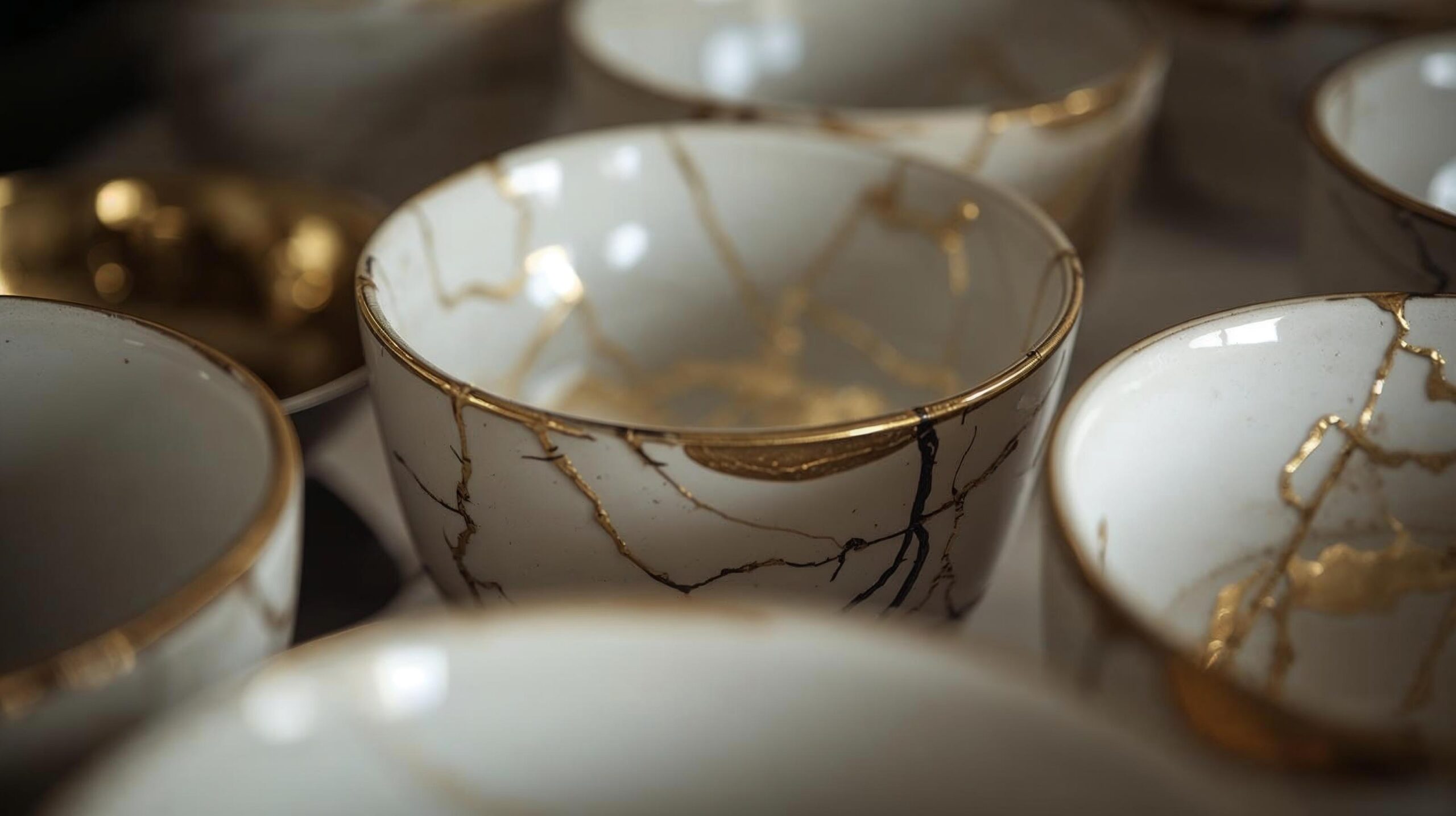 No Japão, quando uma cerâmica quebra, ela é reparada com ouro — técnica chamada kintsugi.