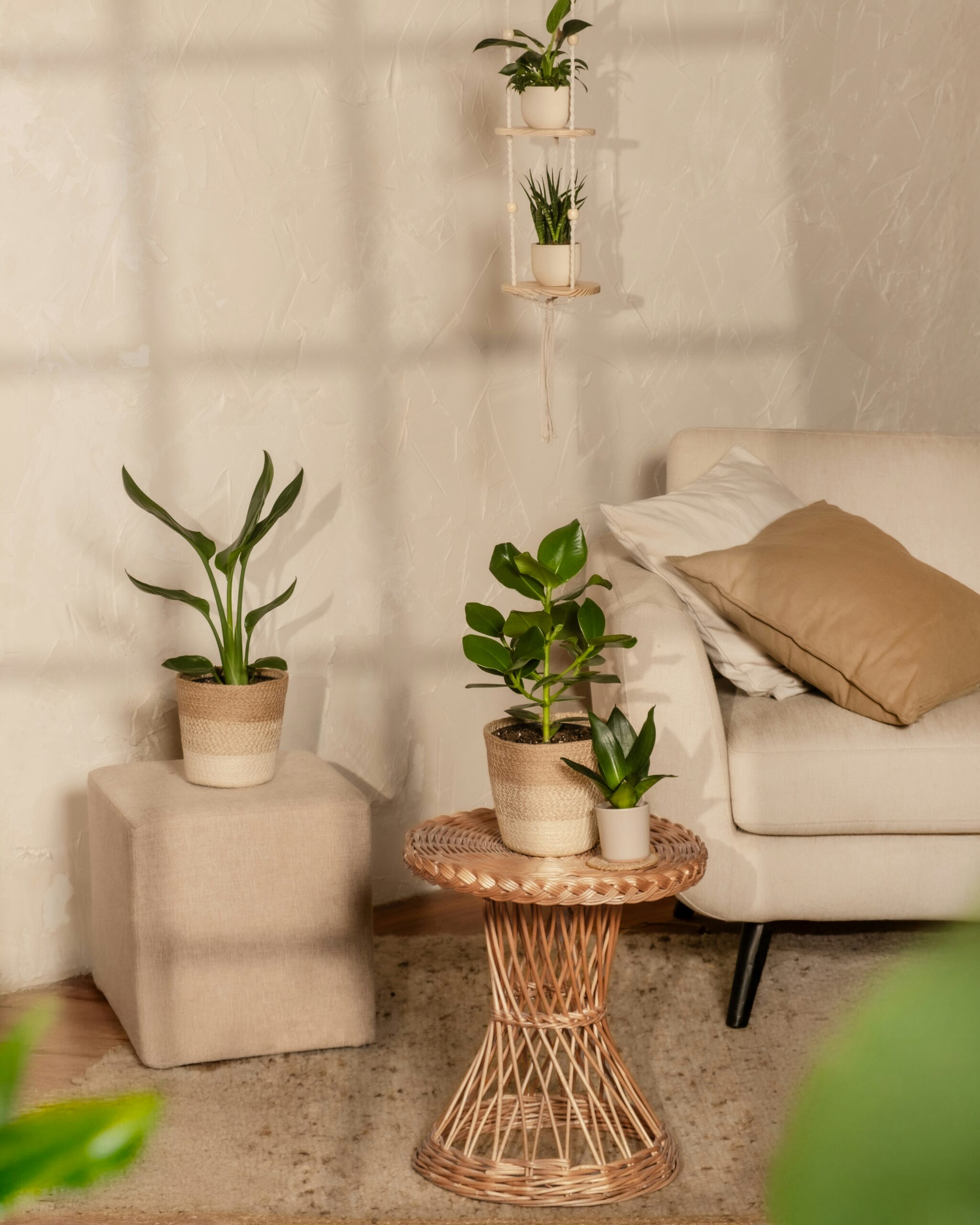Deixe plantas próximas às entradas de luz. Elas desenham sombras vivas ao longo do dia, poesia em movimento.