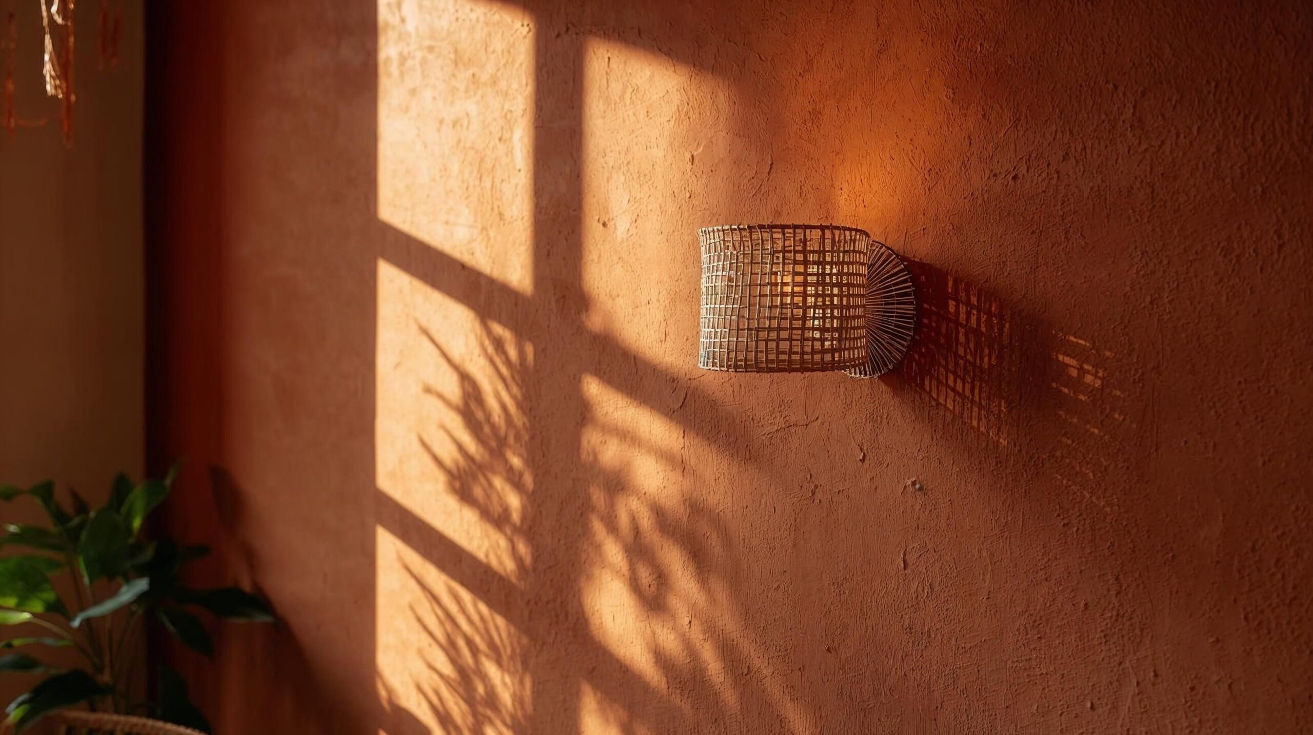 Uma arandela suave tocando a parede terracota